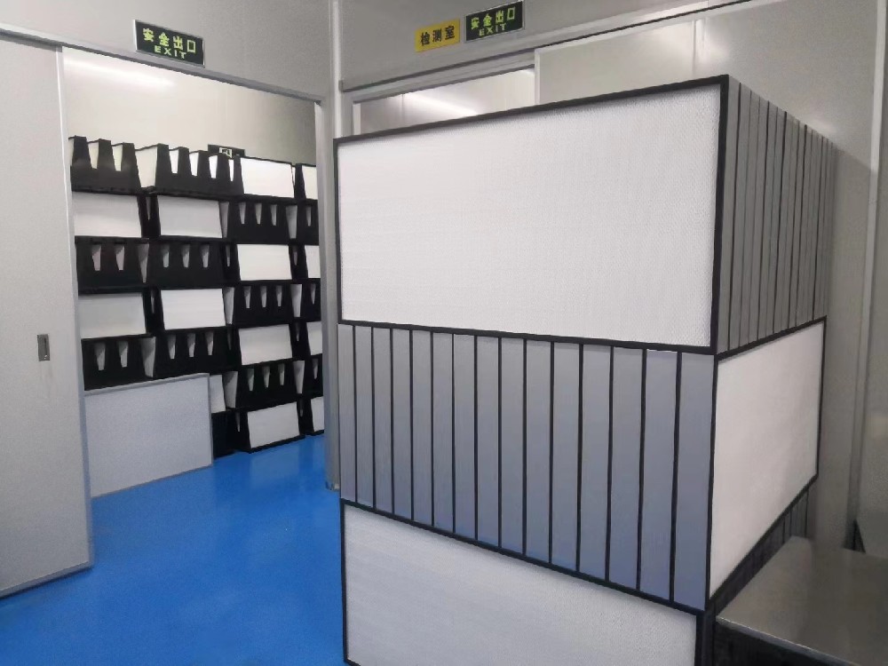 4、高效過濾器安裝前,必須在安裝現(xiàn)場拆開包裝進(jìn)行外觀檢查,內(nèi)容包括濾紙、密封膠和框架有無損壞;邊長、對角線和厚度尺寸是否符合要求;框架有無毛刺和銹斑(金屬框);有無產(chǎn)品合格證,技術(shù)性能是否符合設(shè)計要求。然后進(jìn)行檢漏。經(jīng)檢查和檢漏合格的應(yīng)立即安裝。安裝時應(yīng)根據(jù)各臺過濾器的阻力大小進(jìn)行合理調(diào)配,對于單向流,同一風(fēng)口或送風(fēng)面上的各過濾器之間,每臺額定阻力和各臺平均阻力相差應(yīng)小于5%,潔凈度級別等于和高于100級潔凈室的高效過濾器,安裝前應(yīng)按附錄六、一規(guī)定的方法檢漏,并符合第5.4.1條規(guī)定的要求。